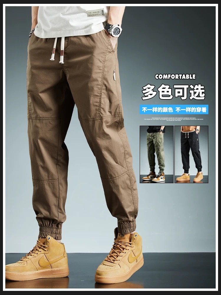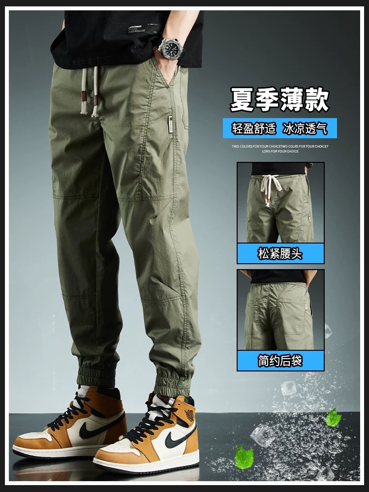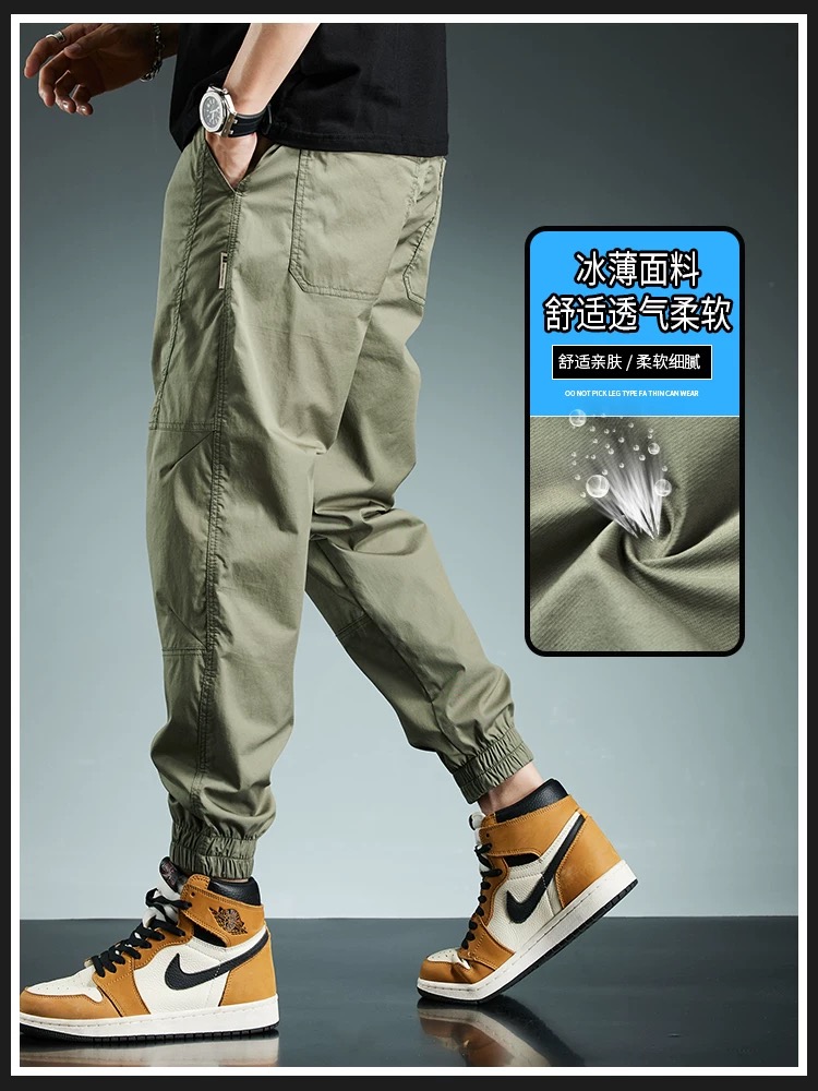 束脚休闲裤男士潮流夏季薄款冰丝裤透气凉爽潮牌哈伦九分裤子男款