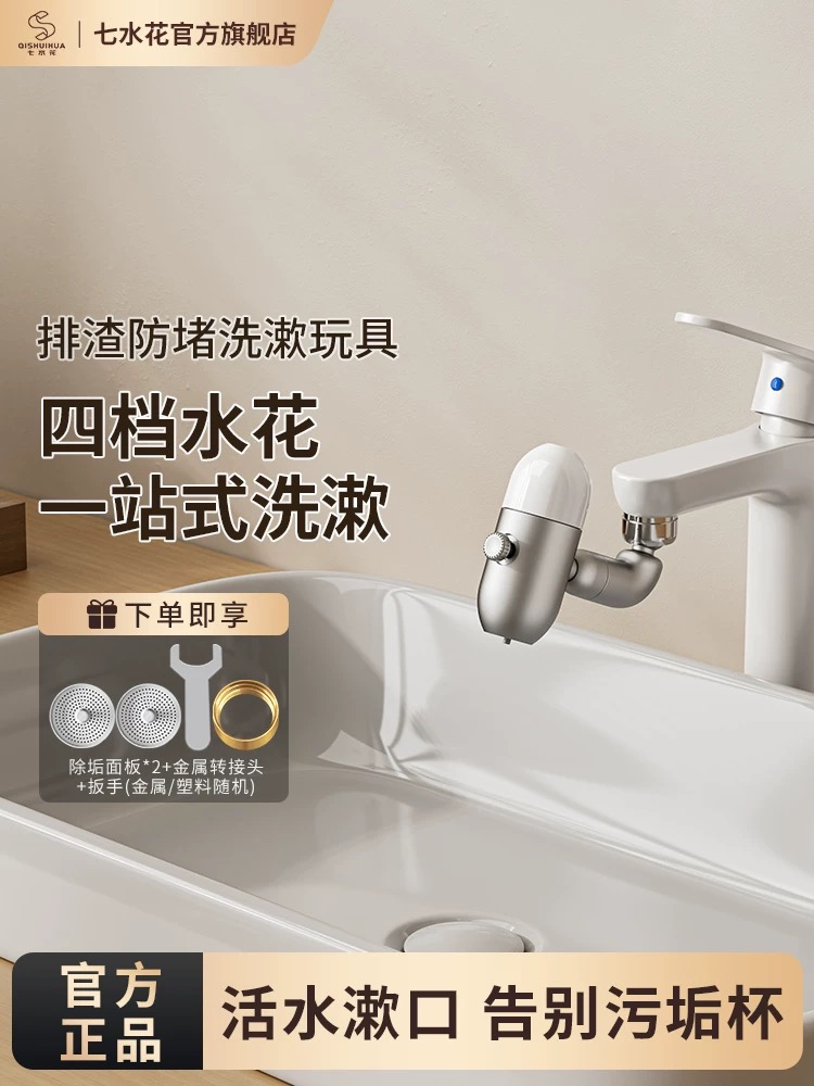 七水花小喷泉水龙头延伸器万向可旋转防溅水神器起泡器增压洗漱口