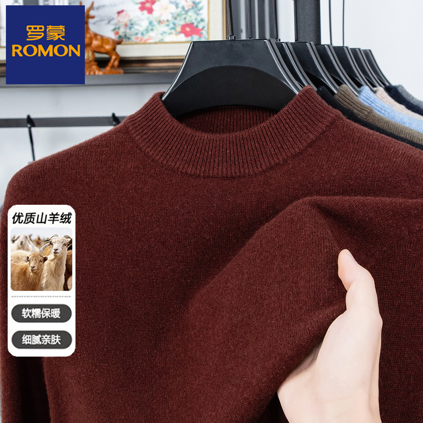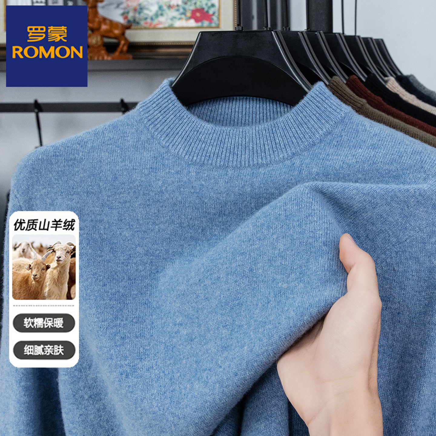 罗蒙男装秋冬厚款中老年男士半高领纯山羊绒针织衫套头保暖毛衣男
