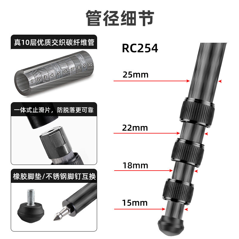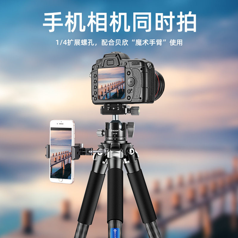 贝欣便携碳纤维单反微单摄影摄像三脚架全景云台无中轴相机支架