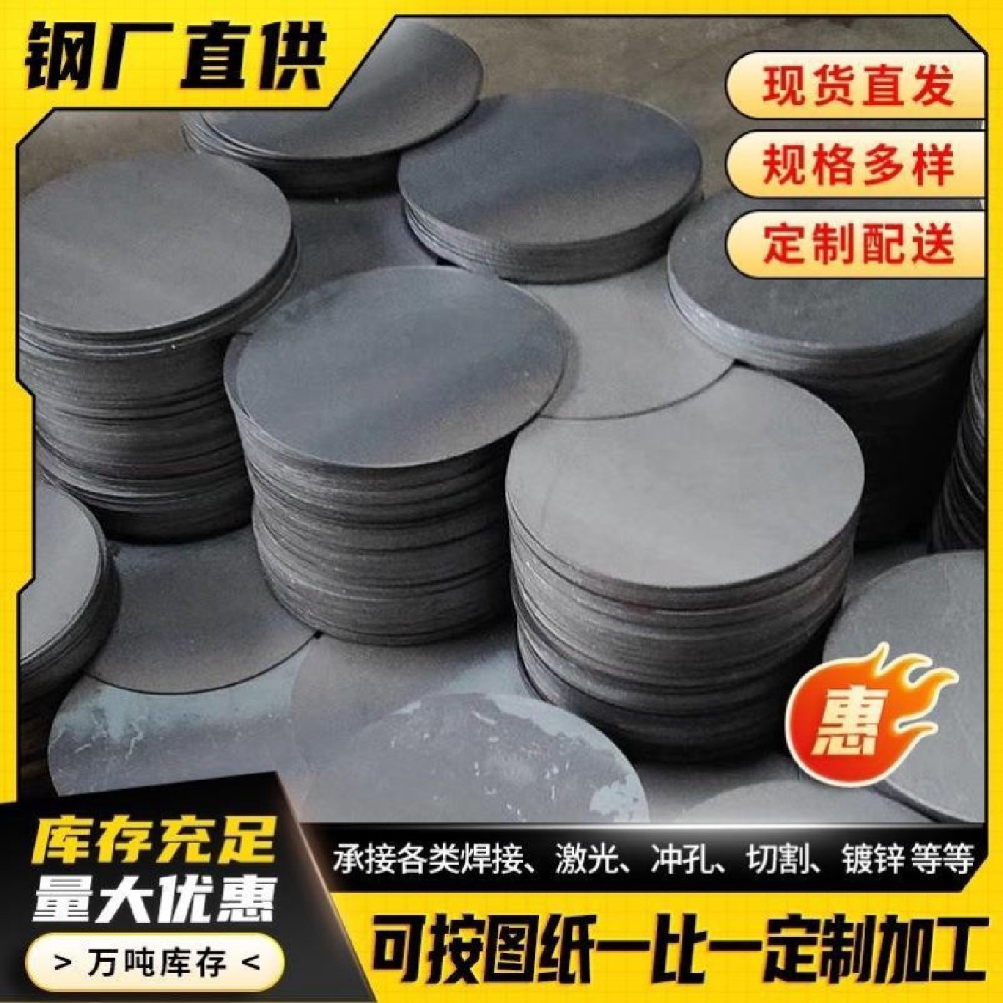 厂家直销桩心钢板钢管底座圆铁饼预埋钢板冲压圆片桩冒基础建材