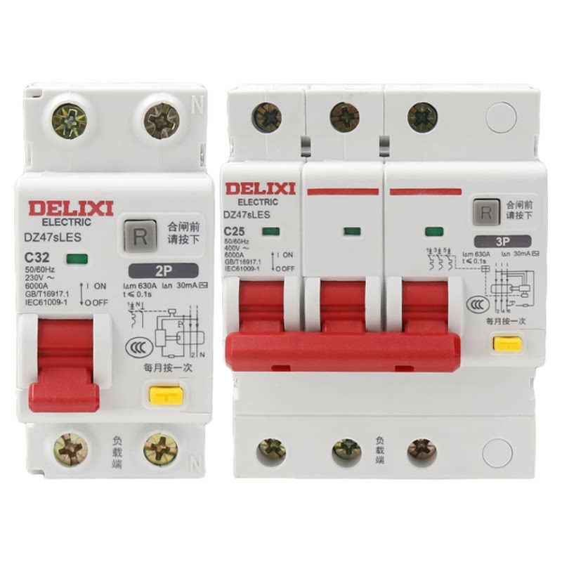 德力西DZ47SLES漏电保护器2P家用1P63A 三相3P+N断路器4P空气开关
