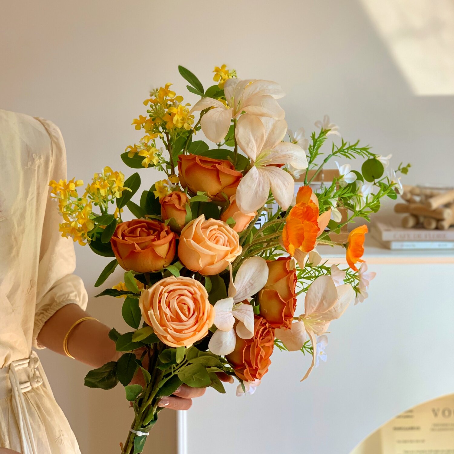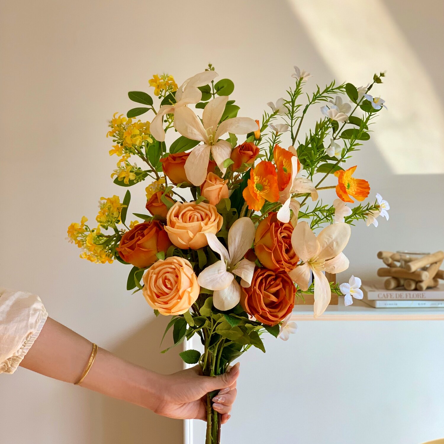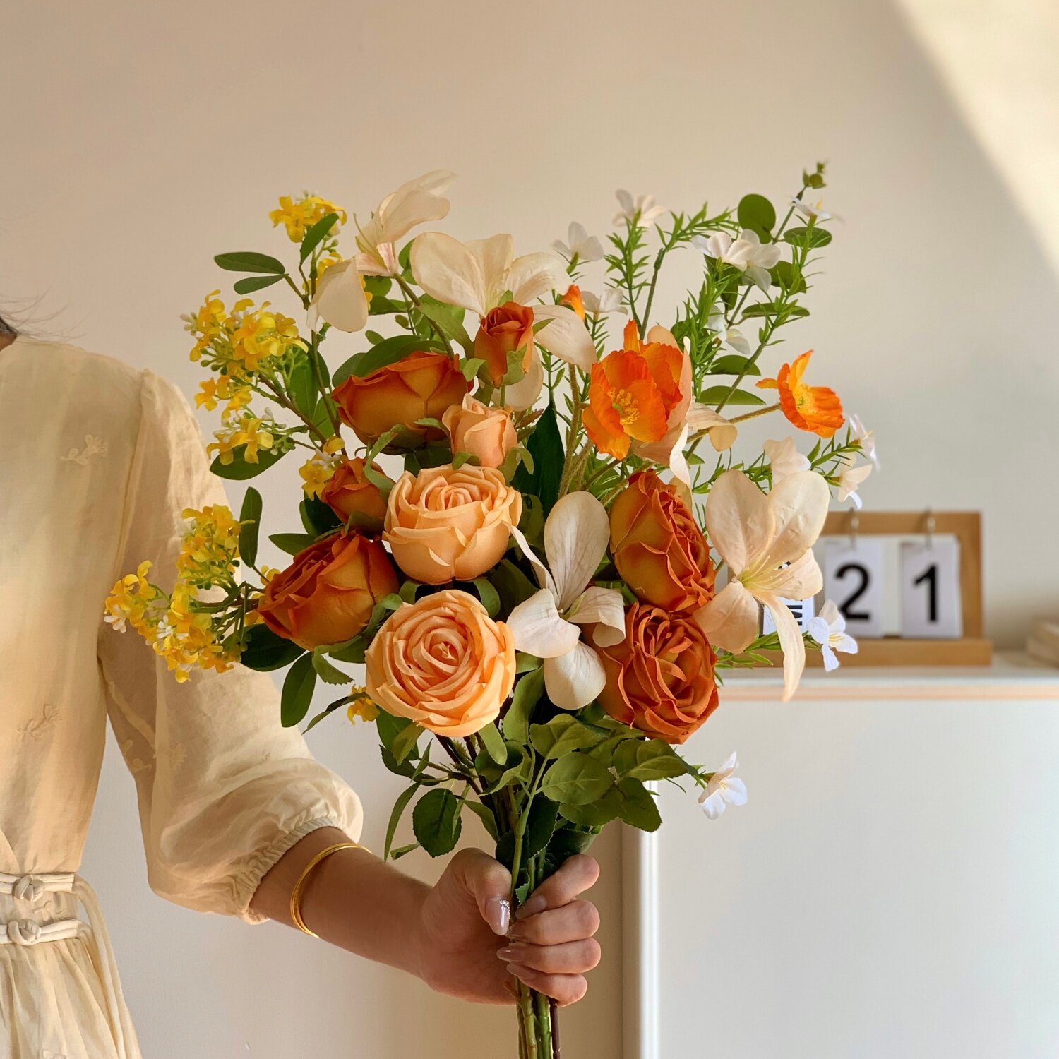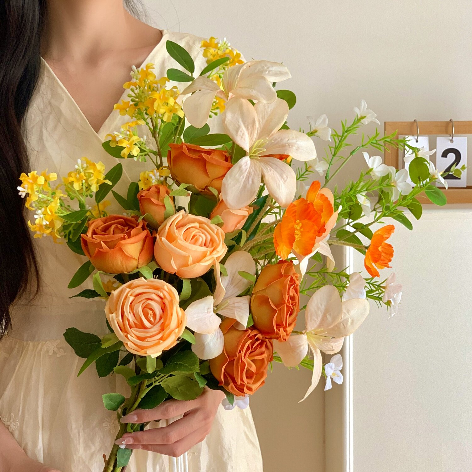 橘色私语仿真花玫瑰花束火焰兰虞美人假花插花摆设客厅装饰品拍照