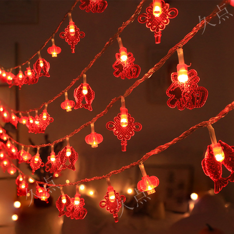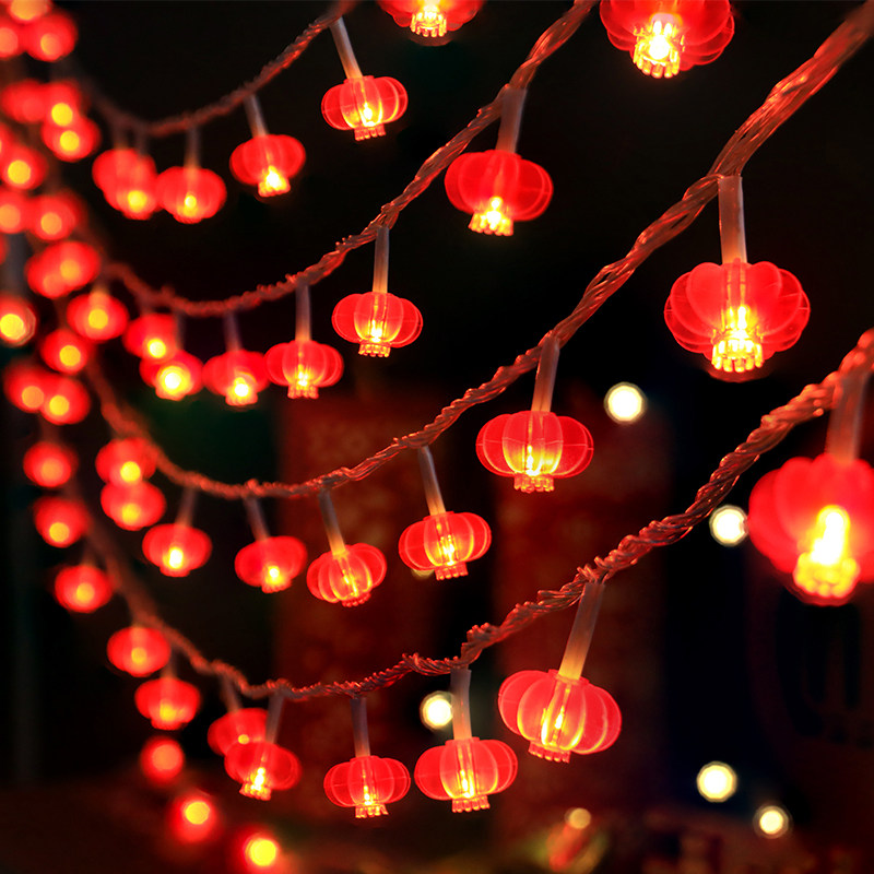 新年红灯笼龙年彩灯户外防水LED小彩灯闪灯串春节过年庭院装饰灯