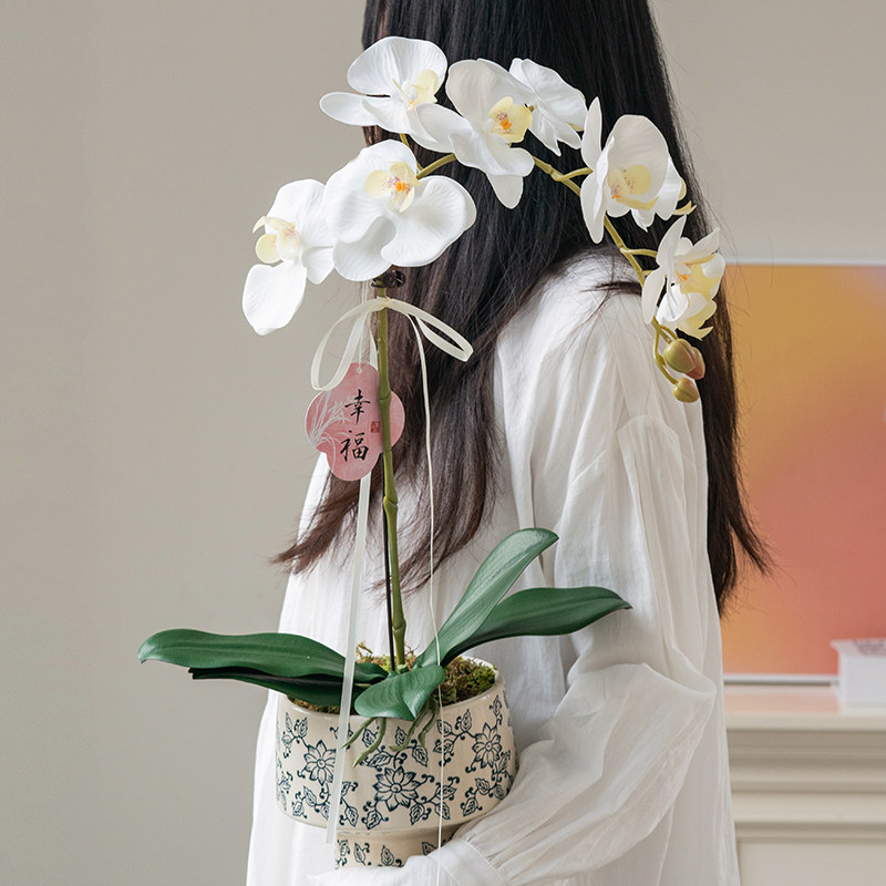 蝴蝶兰仿真绿植高端轻奢假花玄关茶室盆景装饰品氛围布置植物盆栽