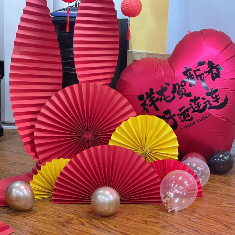 商场金店珠宝店铺橱窗美陈布置红色折纸扇装饰半圆扇子新年元旦节