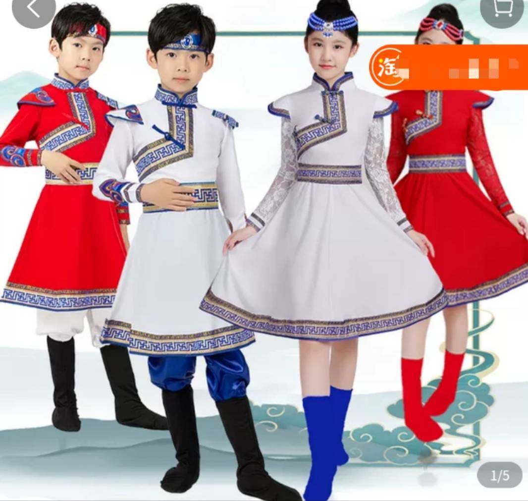 2026新款上市蒙古儿童演出服女鄂伦春族舞台裙少数民族服装学生男