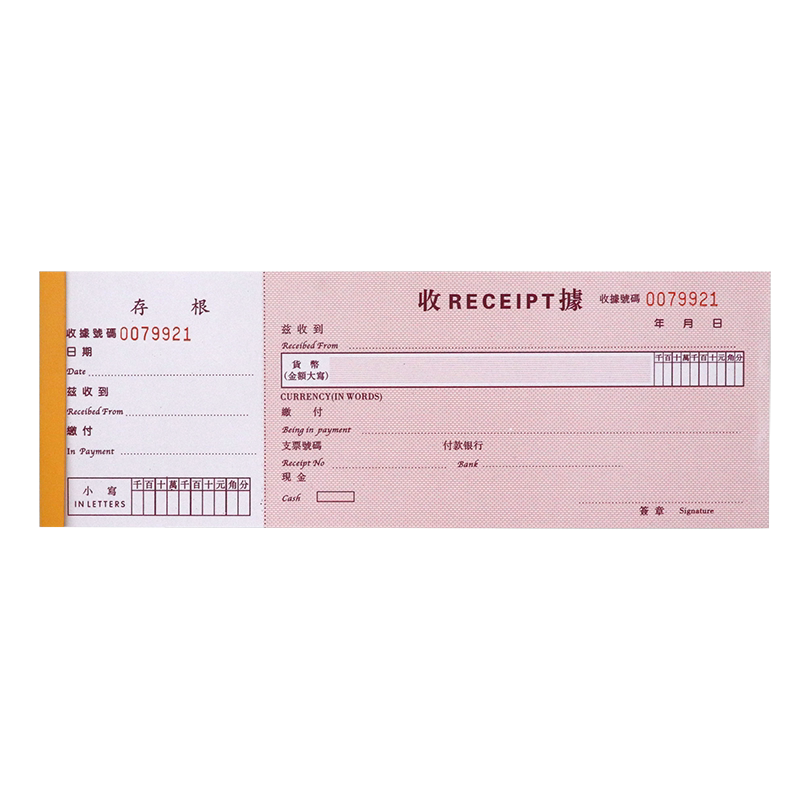 编号收据香港式收款收据中英文带存根联财务支票式深港繁体字收据