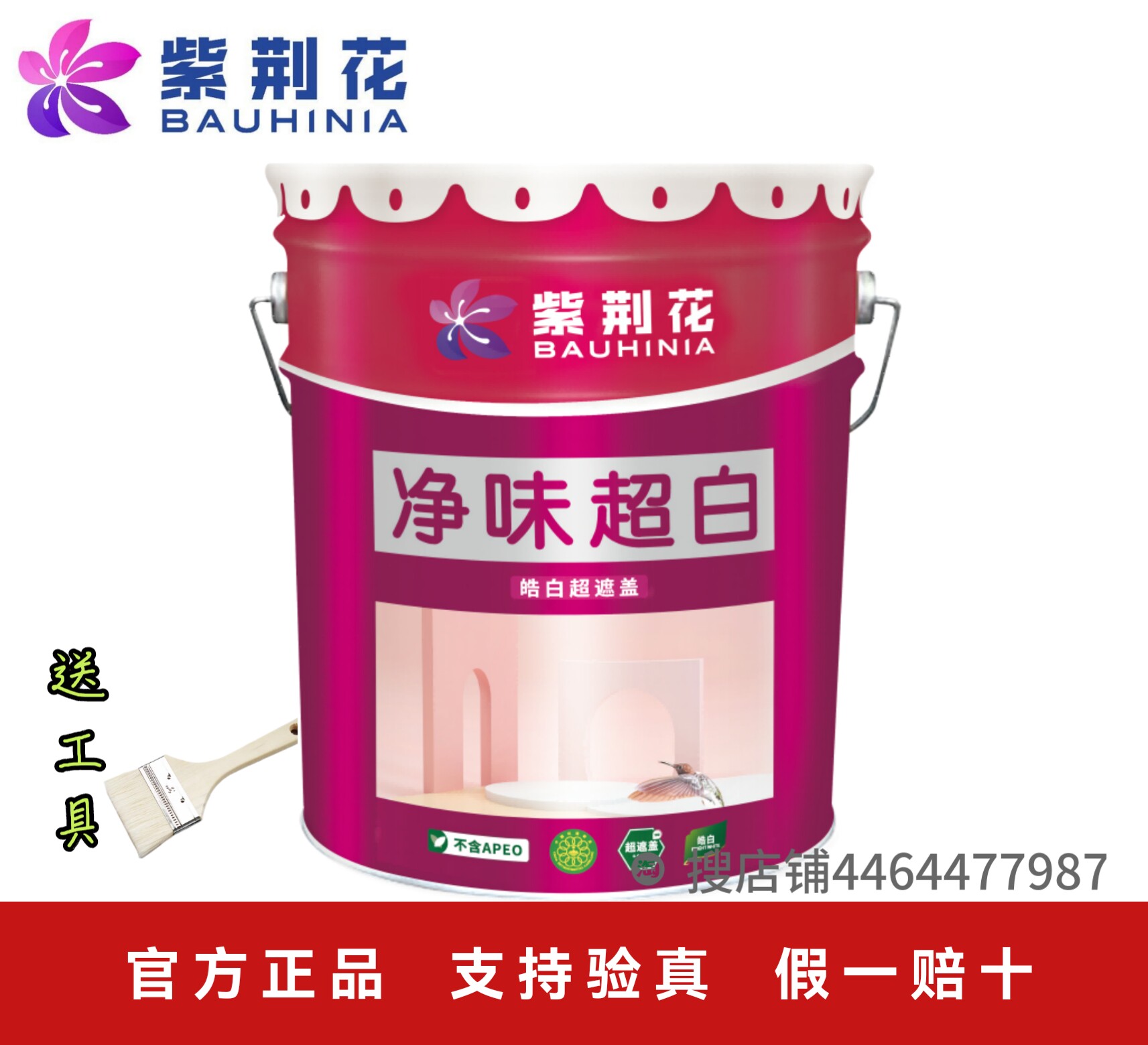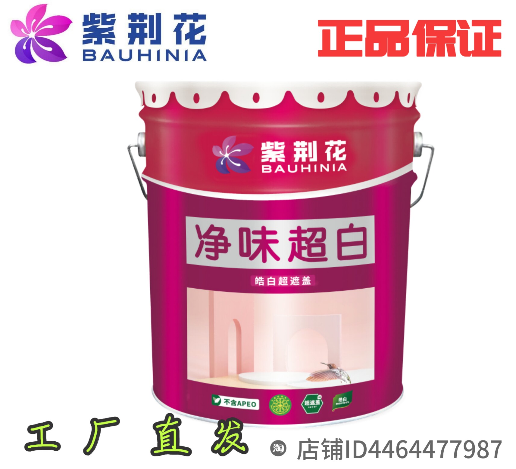 紫荆花乳胶漆净味超白室内家用环保超覆盖自刷涂料内墙漆白色面漆