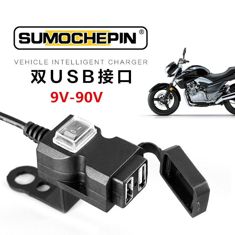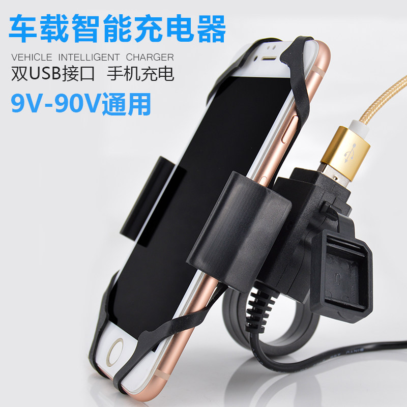 通用电动车车载充电器9v-90v改装件摩托车双usb手机车充快充防水
