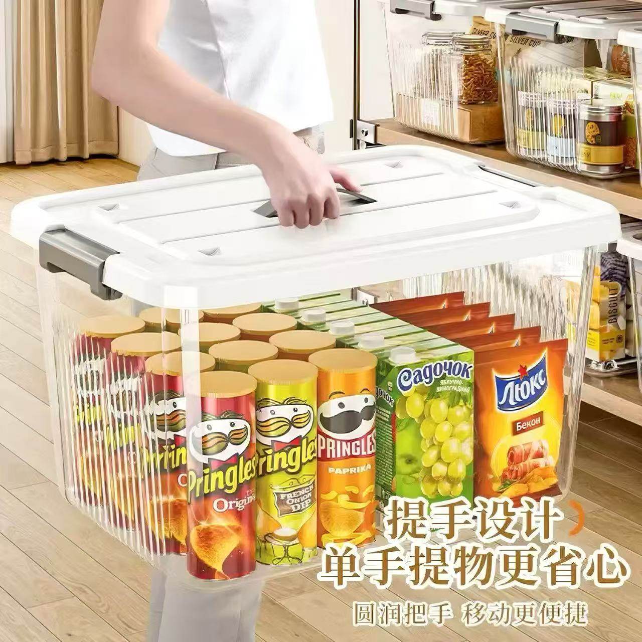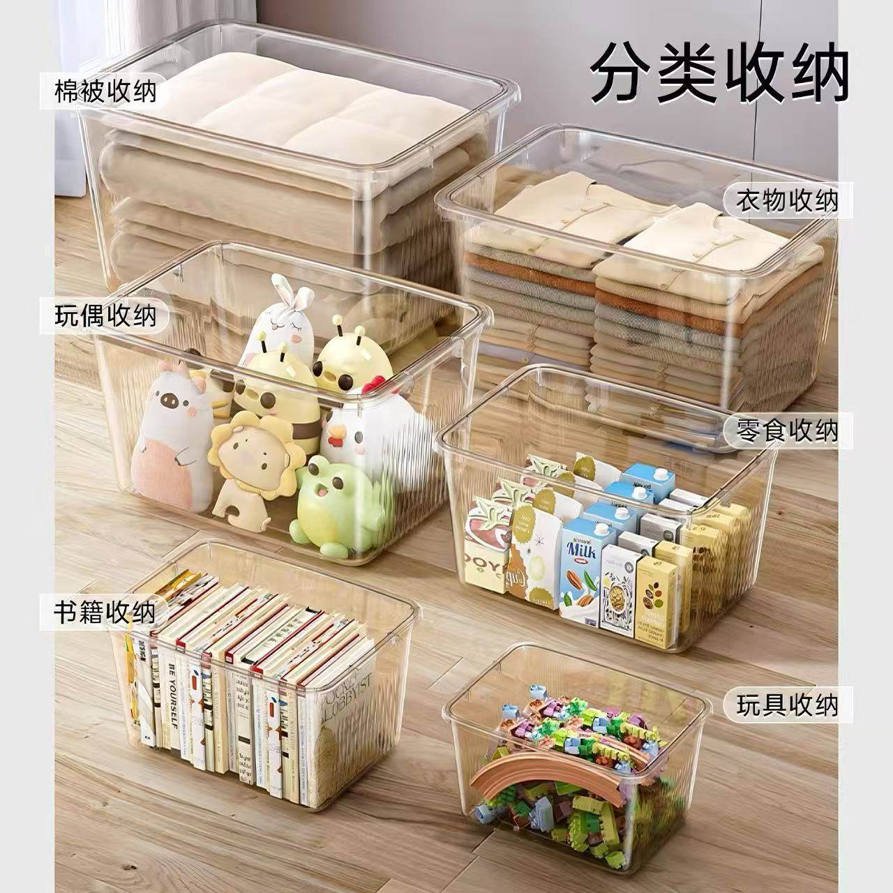 透明收纳箱家用玩具衣物零食书本大容量塑料手提储物盒整理箱