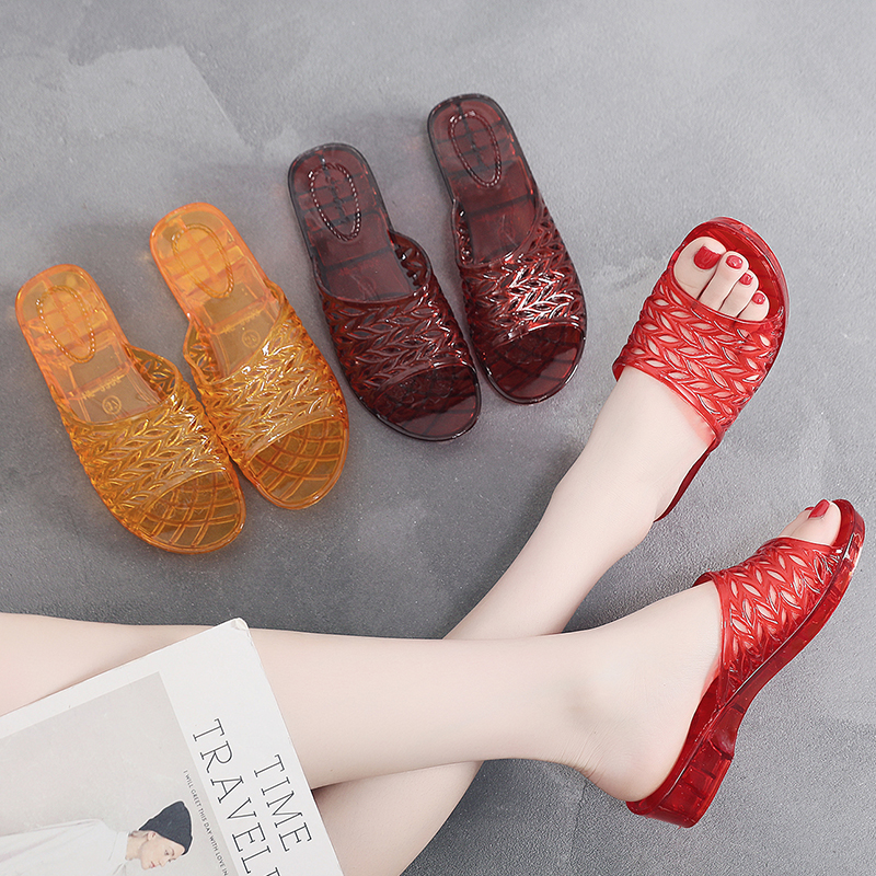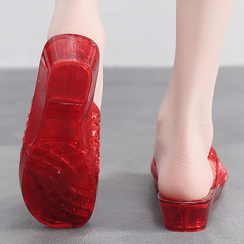 夏新拖鞋女水晶塑料果冻凉拖居家防滑防臭洗澡洞洞鞋中跟妈妈女鞋