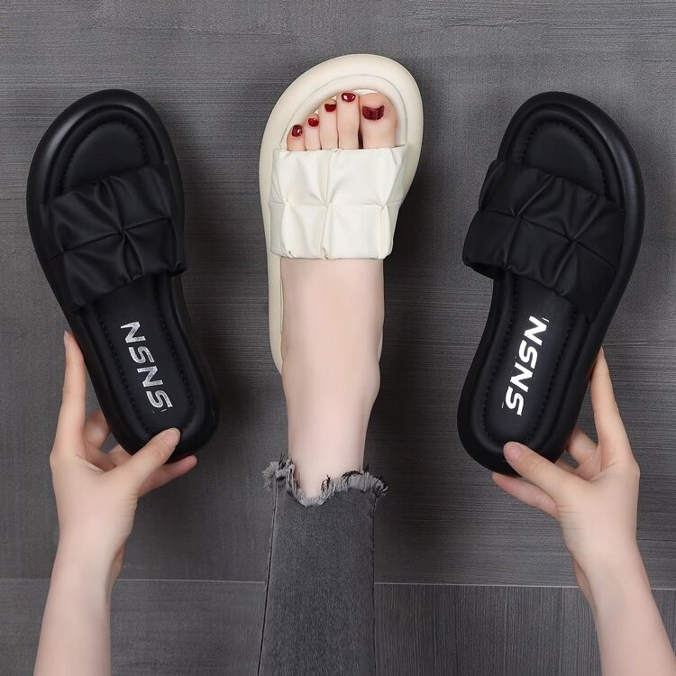 断码清仓品牌鞋真皮拖鞋女2024夏季新款平底厚底一字拖外穿沙滩鞋