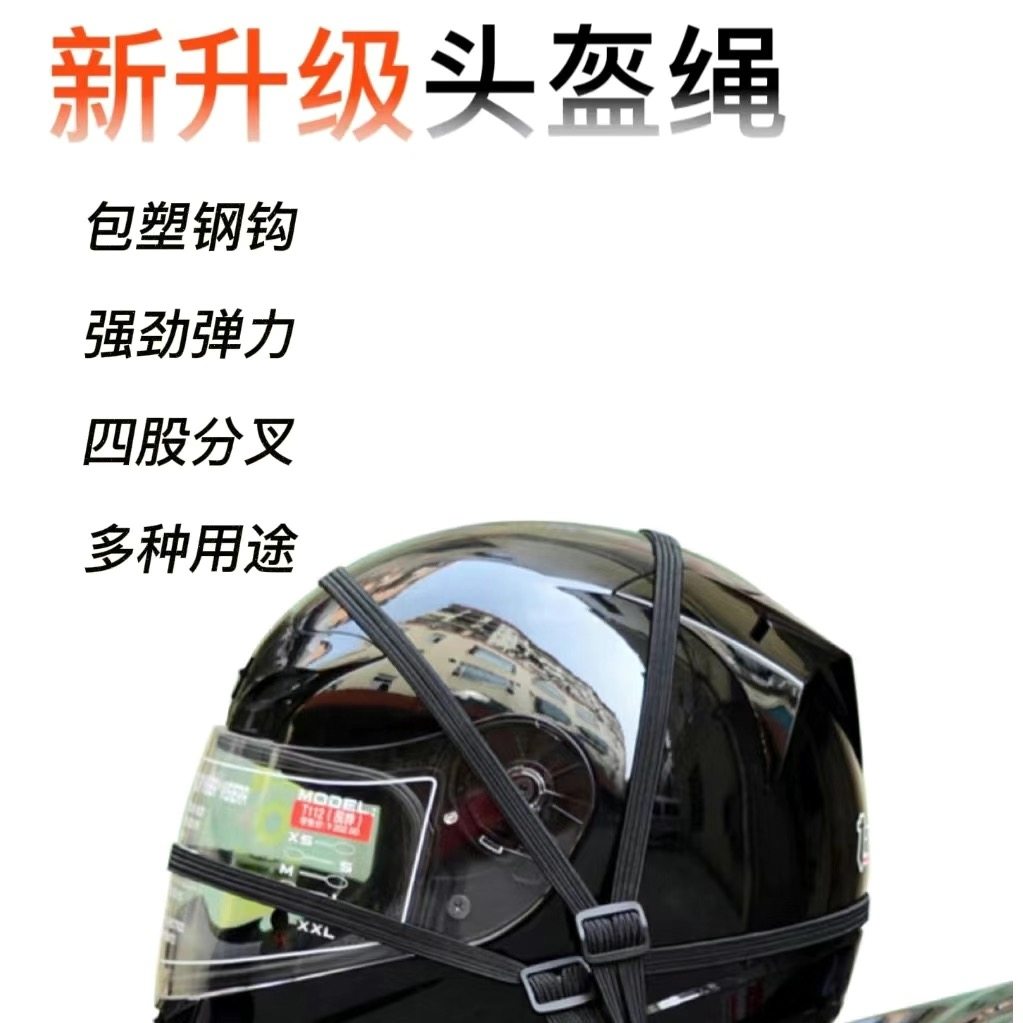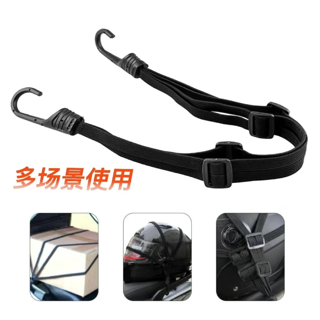 头盔弹力捆绑带摩托车电动车后座固定包塑钢钩四股分叉强劲弹力绳