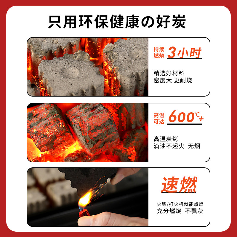 速燃炭烧烤碳木炭无烟碳果木炭室内引火户外家用煤球围炉煮茶炉子