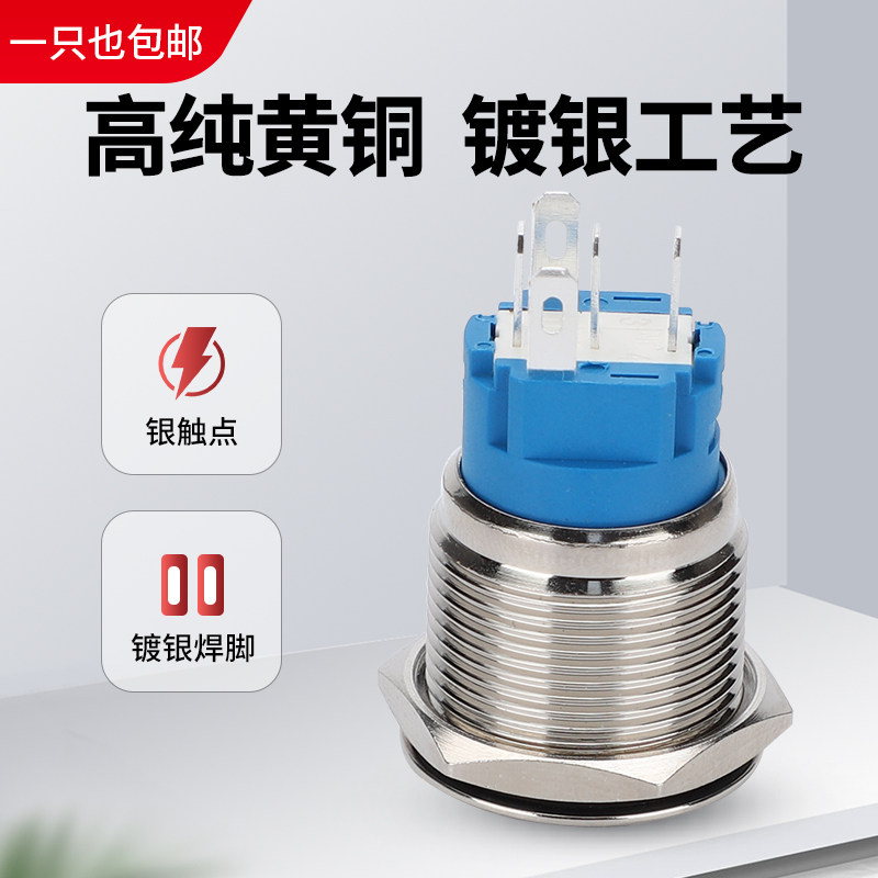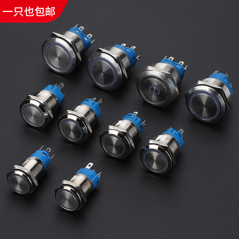 金属按扭开关12 16 19 22mm自锁 复位带灯环形电源标启动防水开关