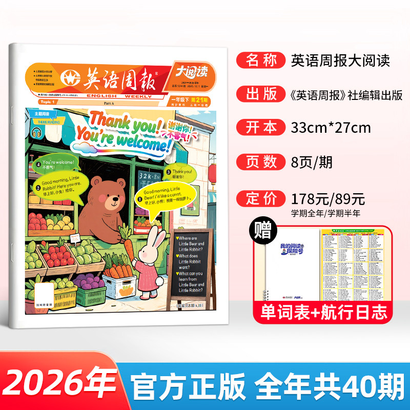 小学生英语周报大阅读2026年PEP人教版1-6年级教材同步英语听力画报【全年/半年订阅】2026年春季英文报纸杂志课外知识拓展21世纪