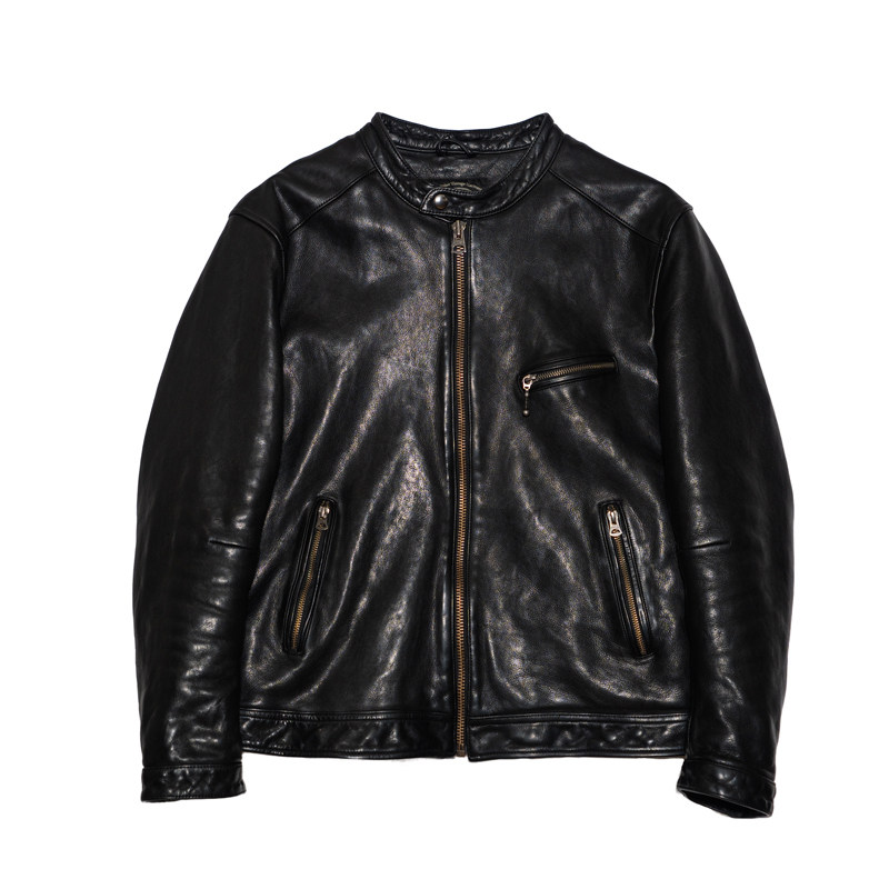特叔皮衣牛皮雷神重工水洗做旧复古真皮春秋款立领男士休闲夹克