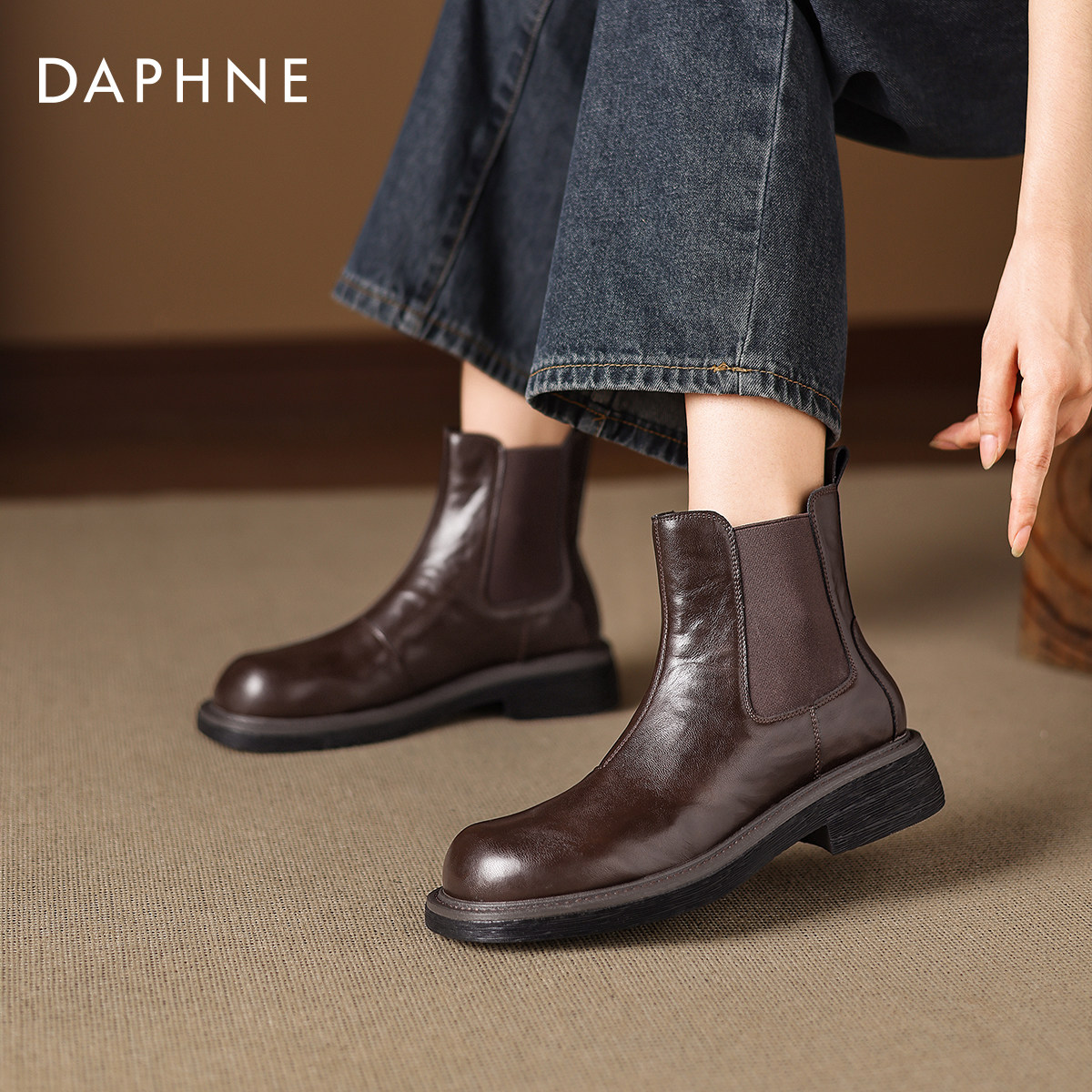 达芙妮短靴女冬季2025新款平底切尔西靴子女鞋加绒瘦瘦皮靴马丁靴