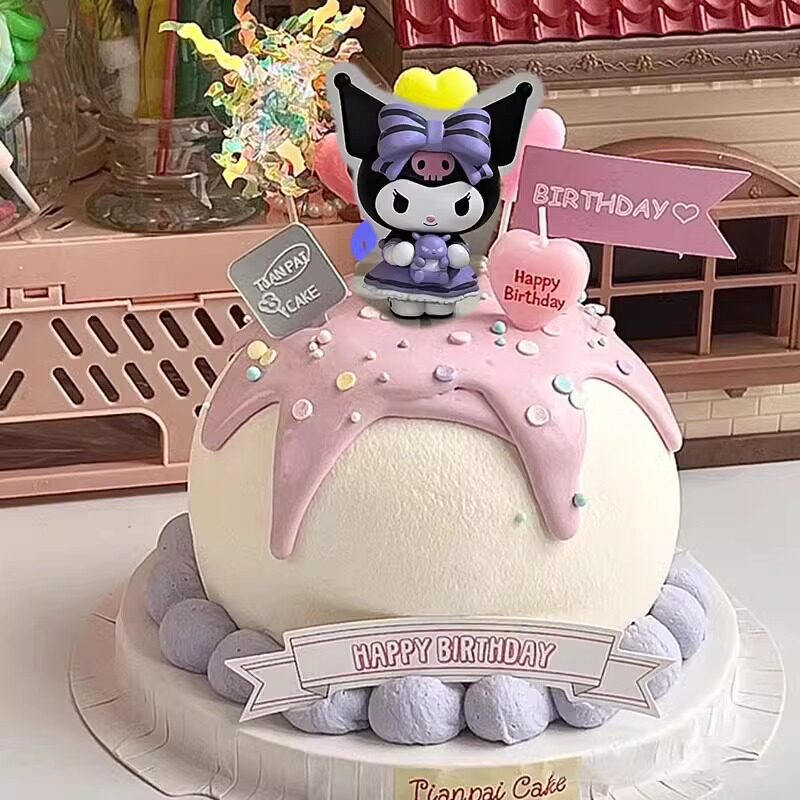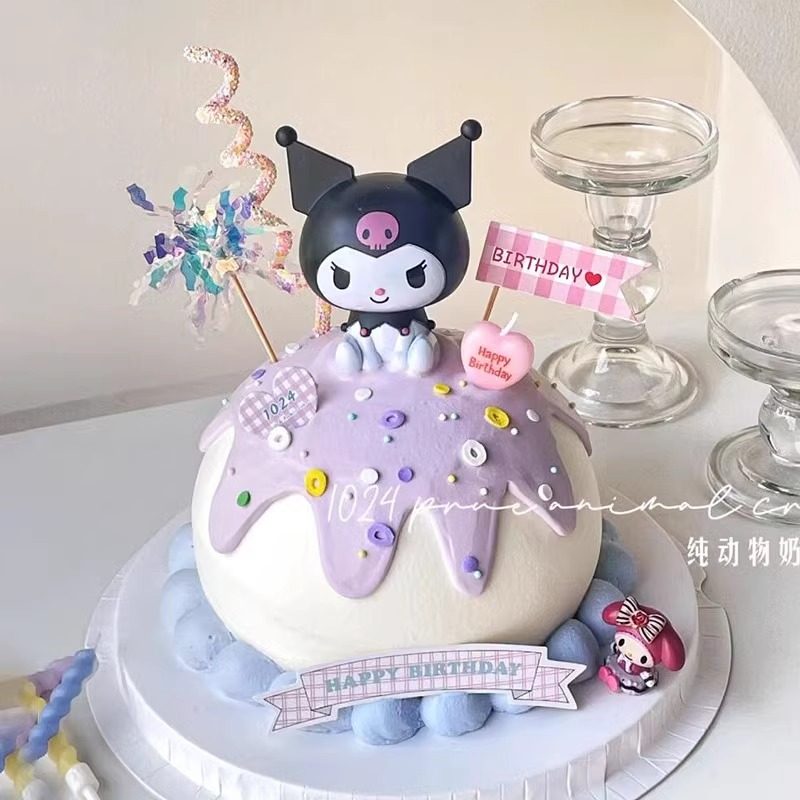 网红库洛女孩生日蛋糕装饰摆件大耳狗子小猫咪小兔子玩偶公仔插件