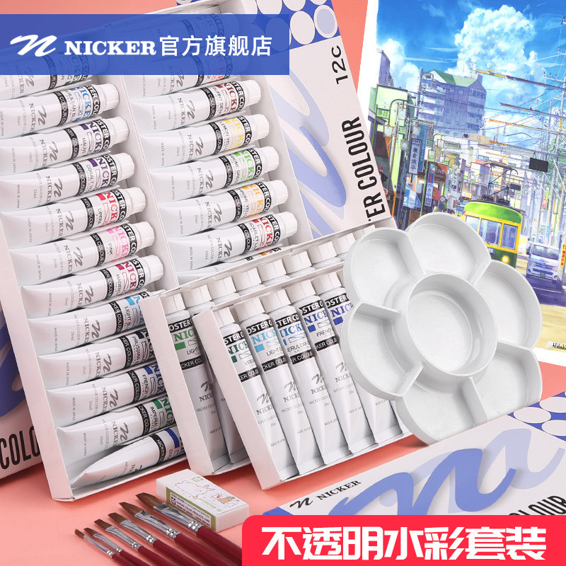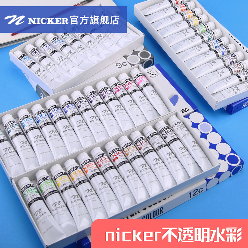 官方旗舰店 日本进口NICKER不透明水彩颜料套装POSTER美术生专用尼克霓嘉广告画颜料管状绘画动漫水粉画工具