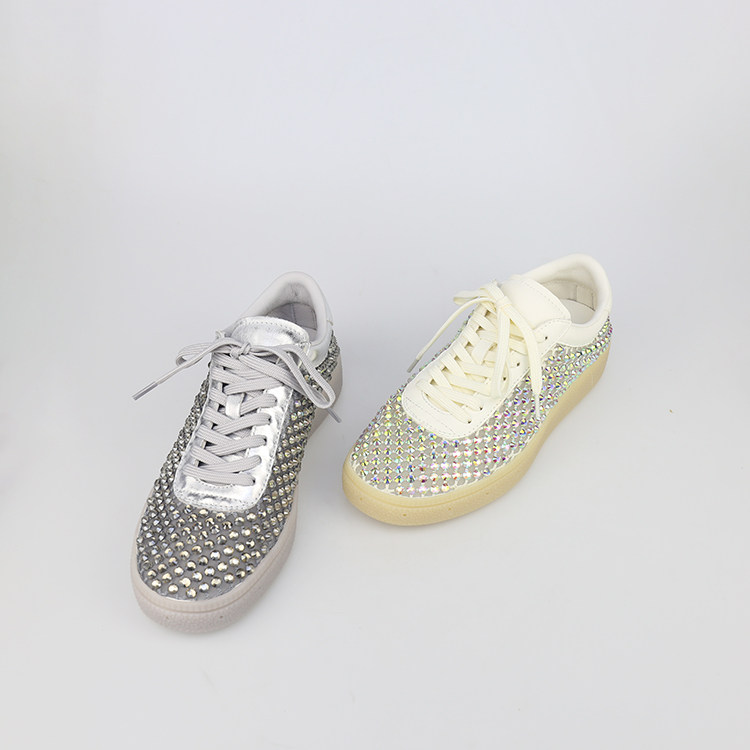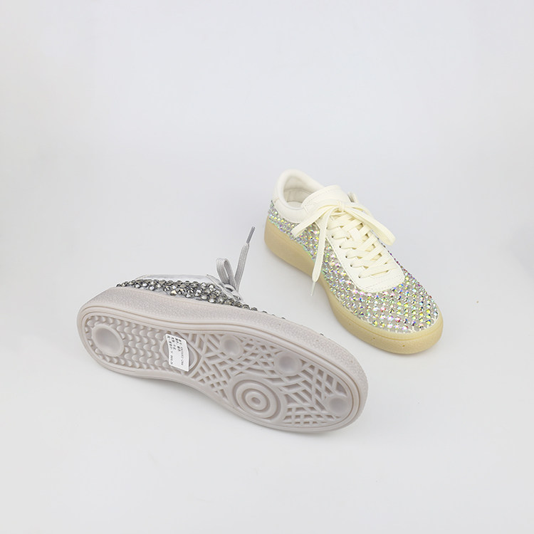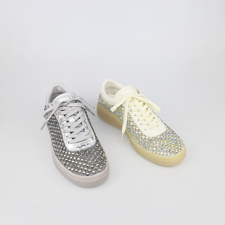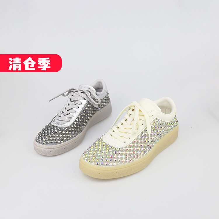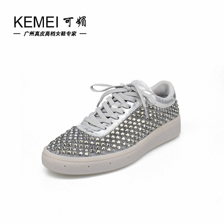 特价II可媚夏款圆头牛皮闪钻网面鞋平底系带休闲鞋女KB25683-298