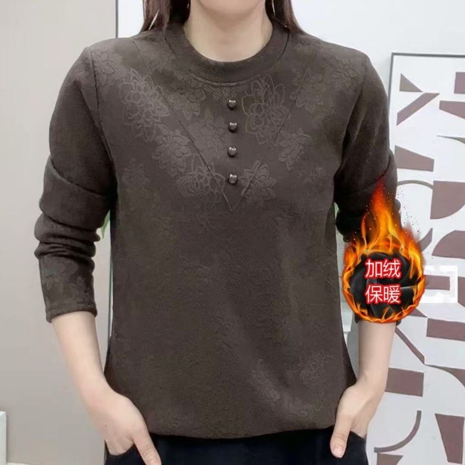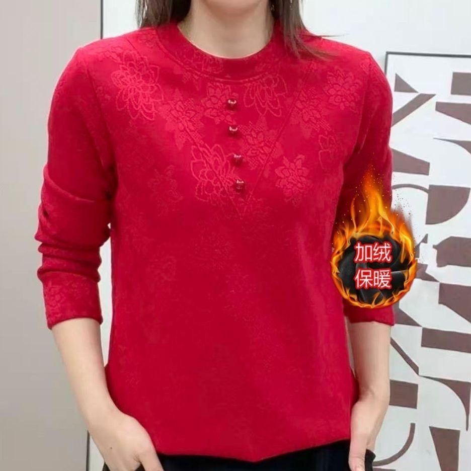 2025新款妈妈冬装加绒毛衣一体绒打底衫中老年女装圆领保暖上衣