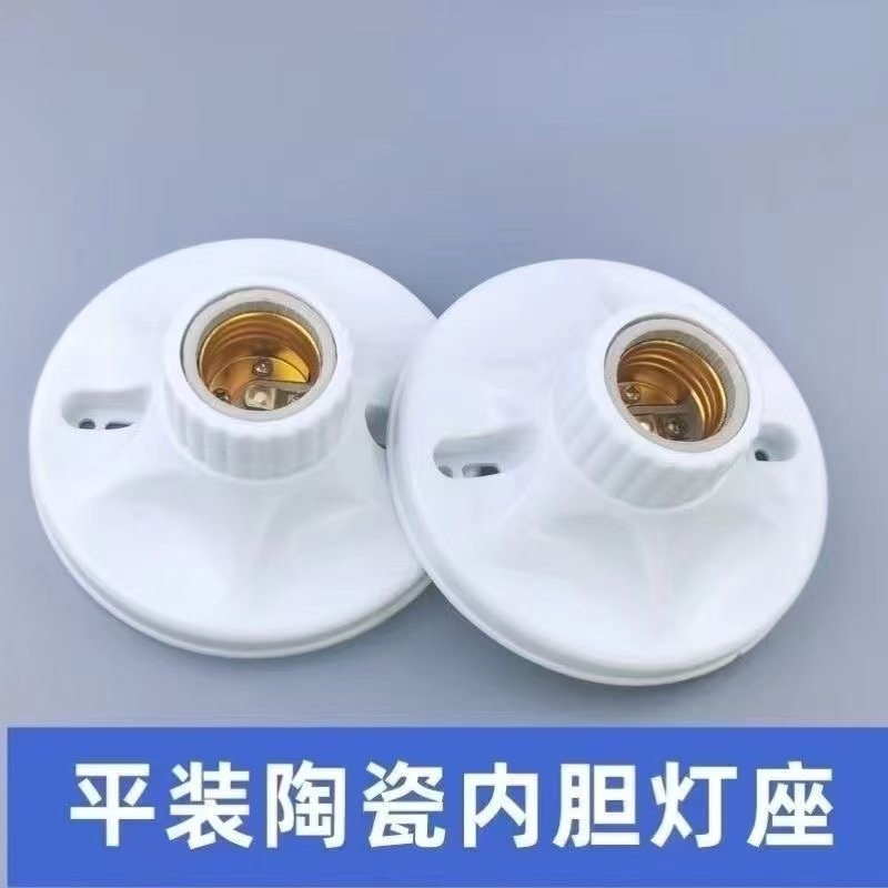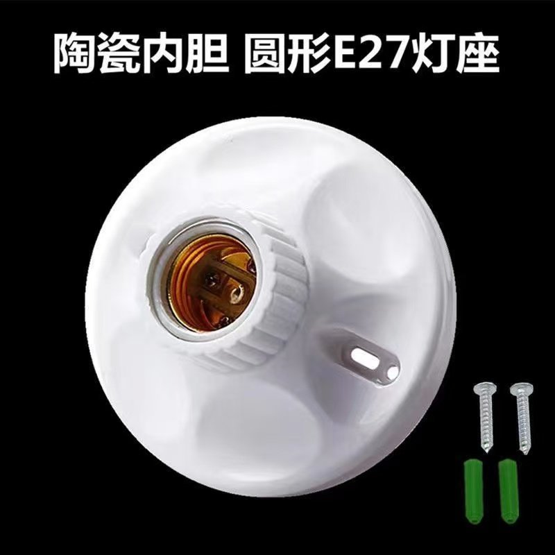 加厚E27螺口灯座圆形明装陶瓷内胆灯头LED节能灯灯座86型螺口灯座