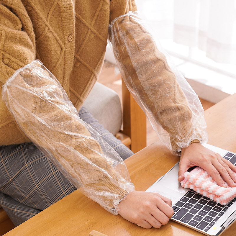 100只一次性套袖防水防污透明塑料加厚厨房家用工作成人护袖袖套