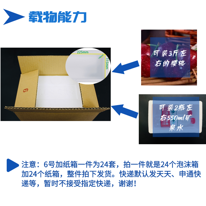 一件24套邮政6号泡沫箱+纸箱食品樱桃 车厘子 食品保温箱保鲜包邮