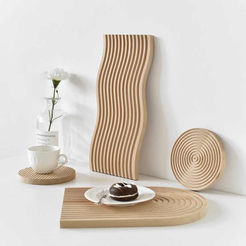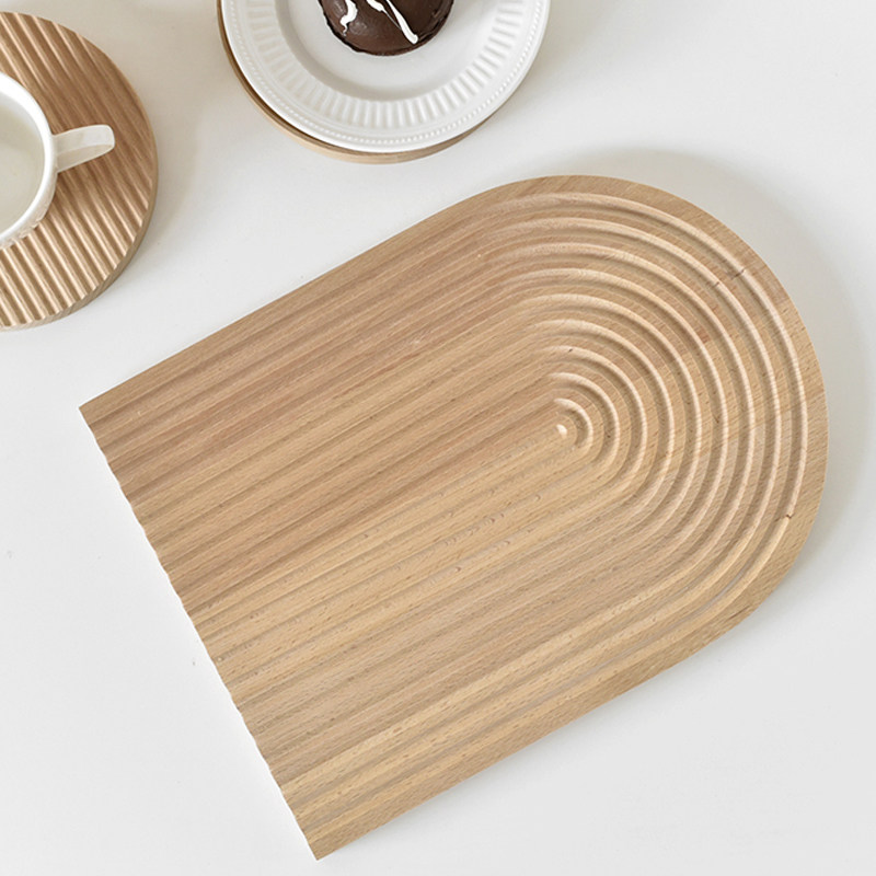 北欧实木质水波纹家居摆件香薰饰品收纳托盘美食拍照甜品餐盘砧板