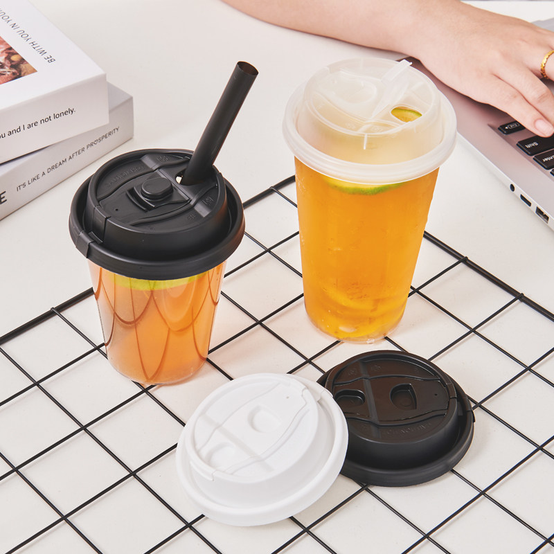 一次性咖啡杯盖网红塑料奶茶防漏外卖盖子连体盖90口径磨砂通用