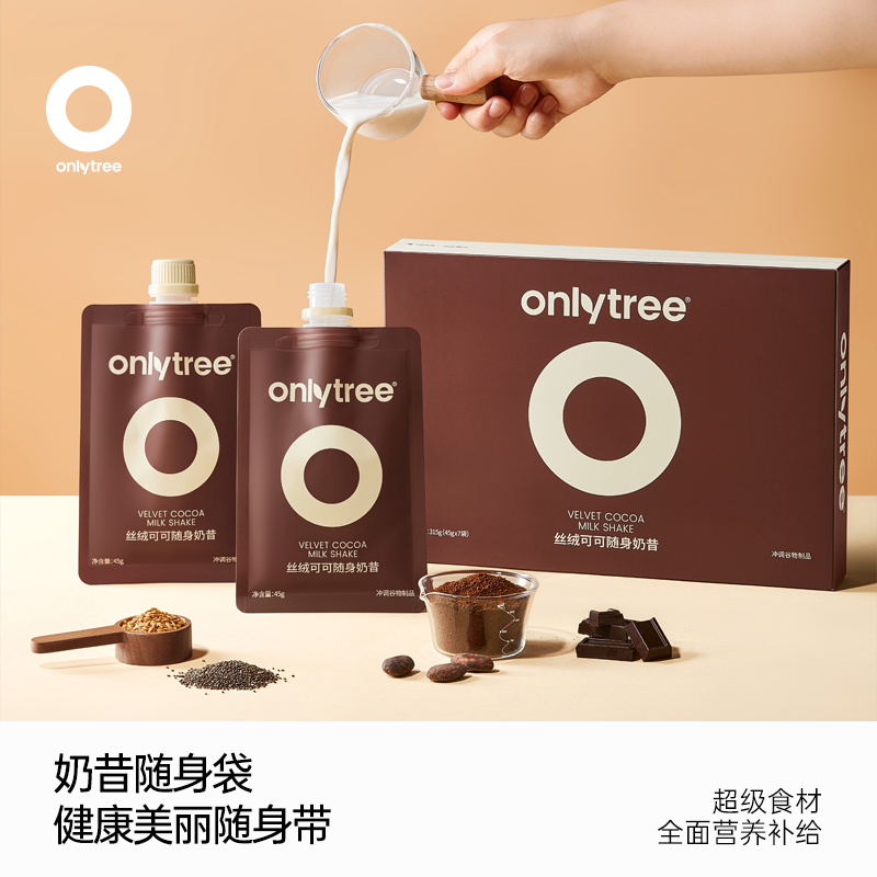 onlytree丝绒可可随身奶昔饱腹感代餐早餐奇亚籽即食营养冲饮袋装