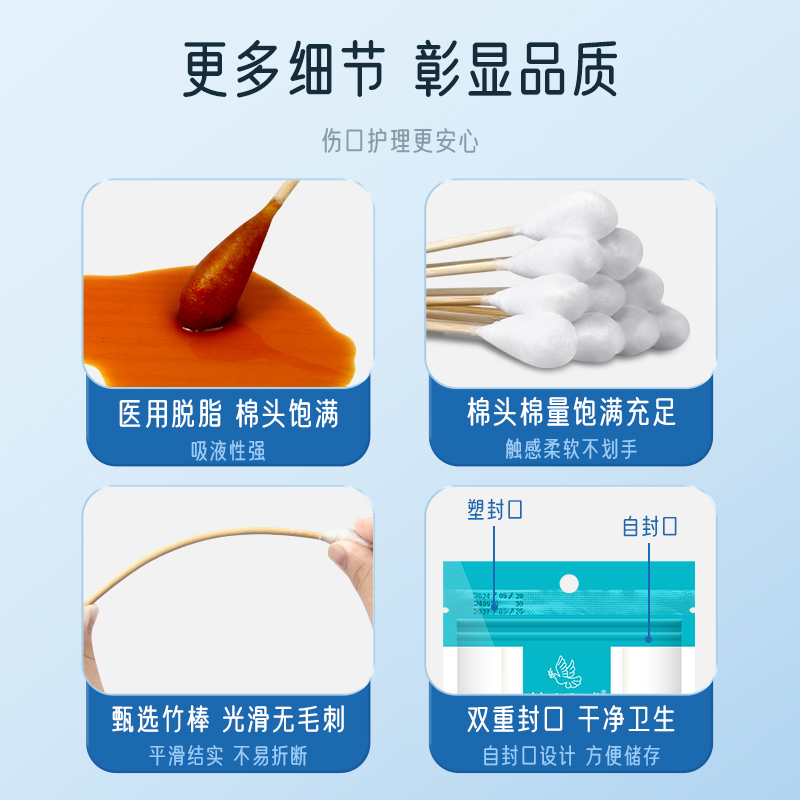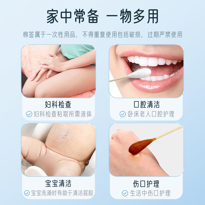 海诺医用大棉签20cm妇科产妇用无菌一次性棉头消毒大头长棉棒棉花