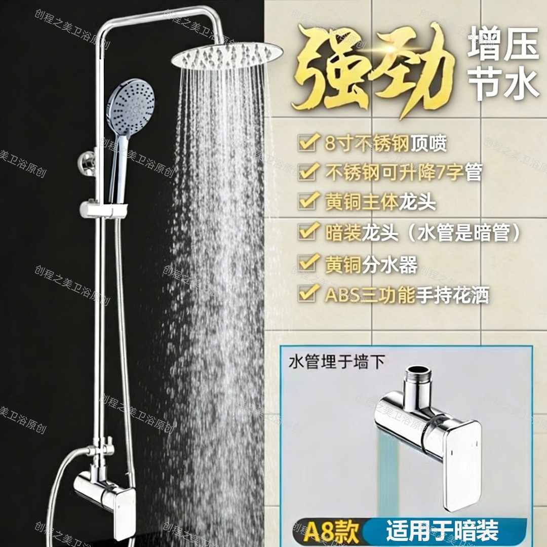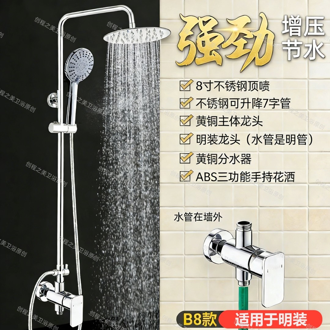 黄铜2单进水花洒淋浴器龙头套装明装简易单水阀泳池公共澡堂学校