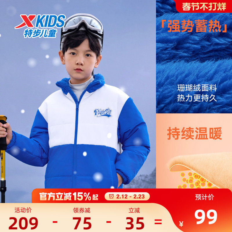 特步童装男童两面穿外套2026秋冬新款儿童保暖棉服中大童三防秋装