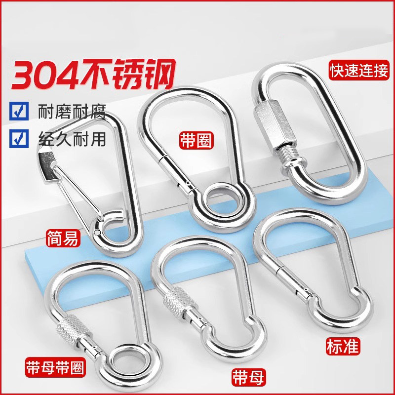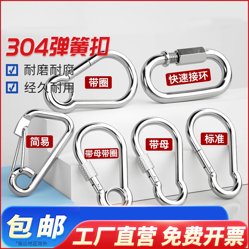 不锈钢弹簧快挂扣链条连接扣带锁螺母安全登山扣挂钩绳扣防松弹簧