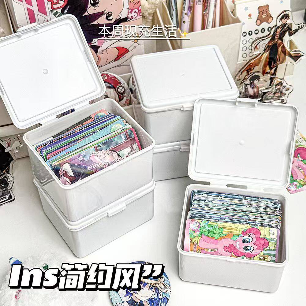 ins大容量纯白翻盖收纳盒防尘咕卡卡套整理多功能小卡卡膜可爱
