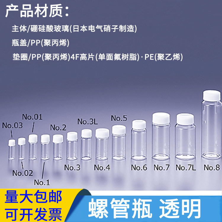 Maruemu日本进口透明螺口瓶硼硅酸玻璃瓶 3.5/4/6/9/13.5/20/30ml