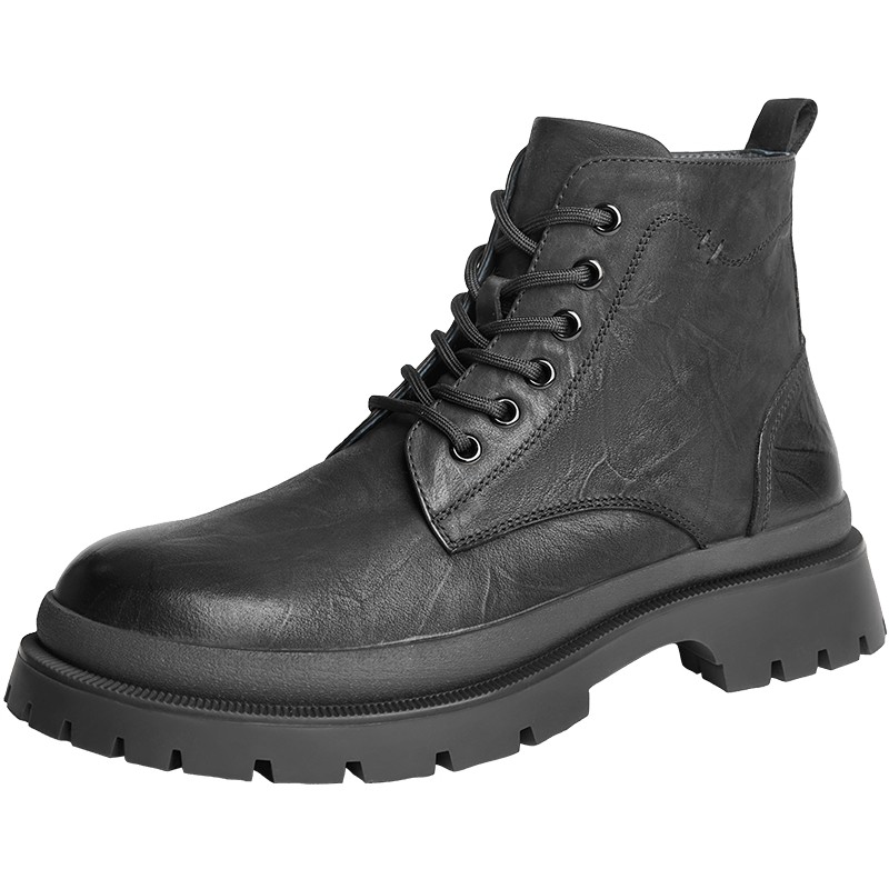 侯明昊明星同款百丽男鞋黑骑士男靴马丁靴加绒短靴工装靴8NB01DD4