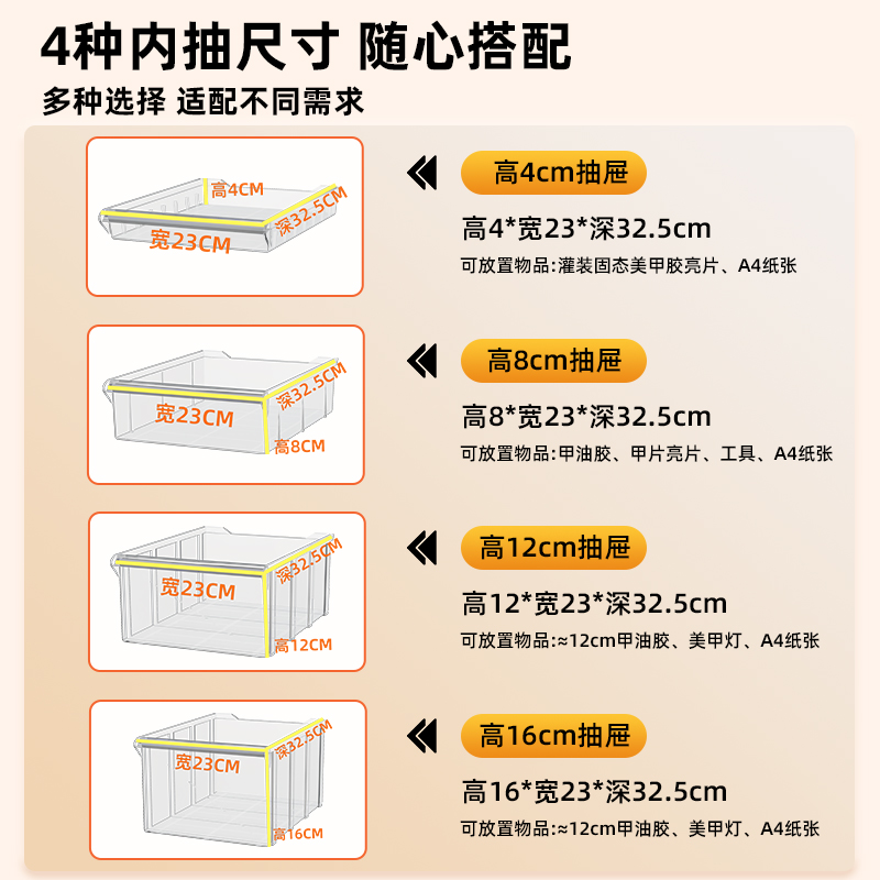 美甲收纳柜A4文件柜甲油胶罐装胶带隔板平底化妆品布样美彩妆烘焙