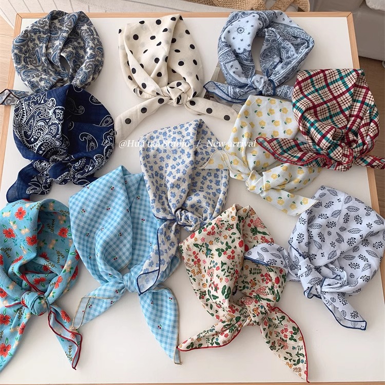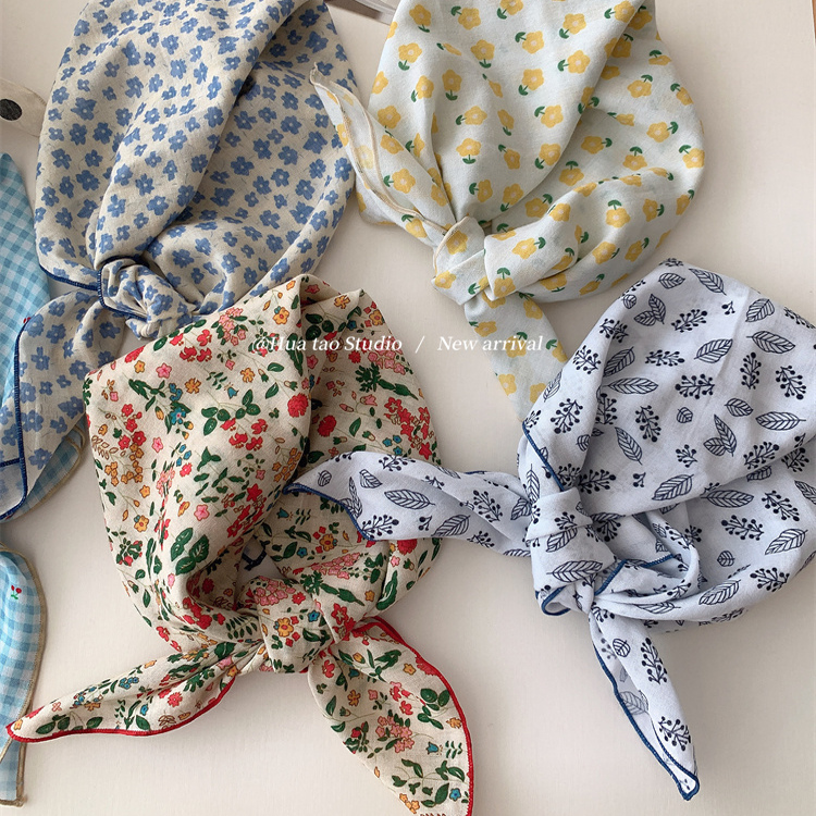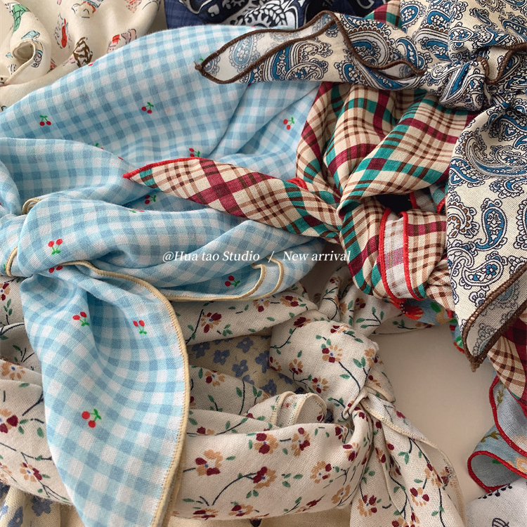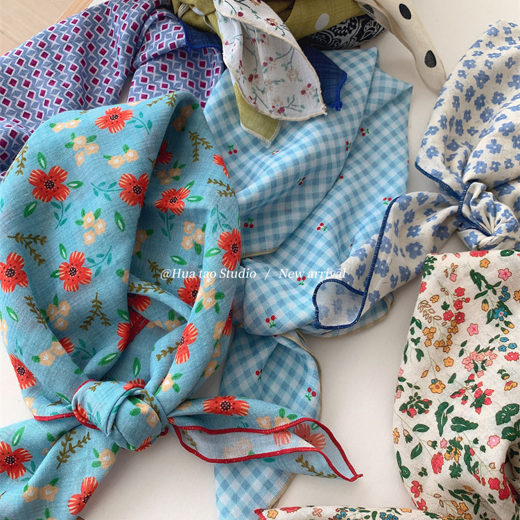 自留软乎乎方巾碎花波点棉麻领巾装饰头巾文艺复古小清新ins腰花