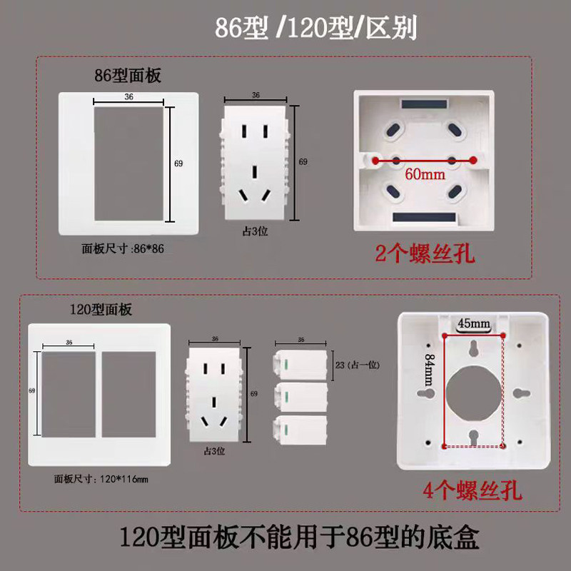 120型空面板 自由组合模块 一二三四位暗装开关面板电源插座家用