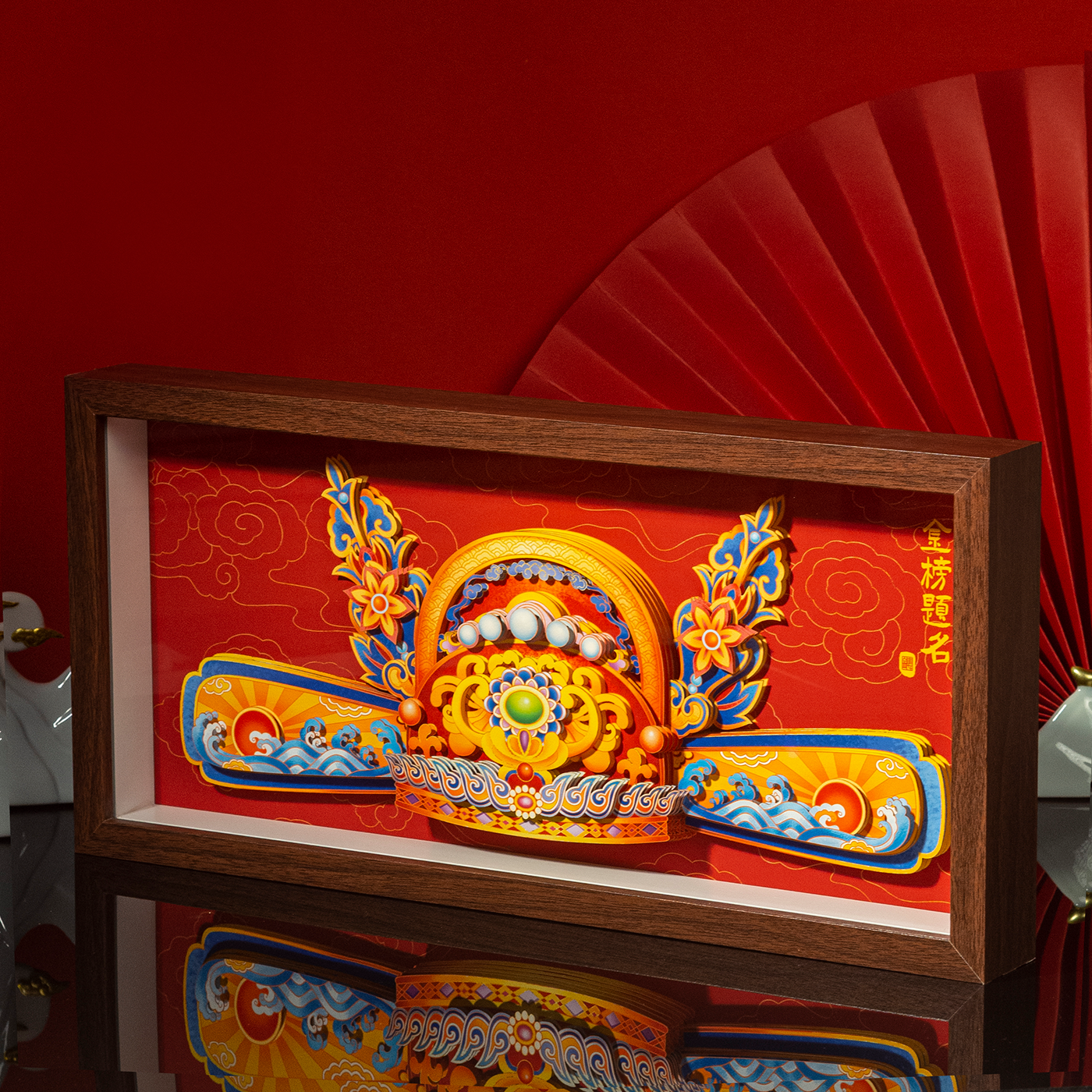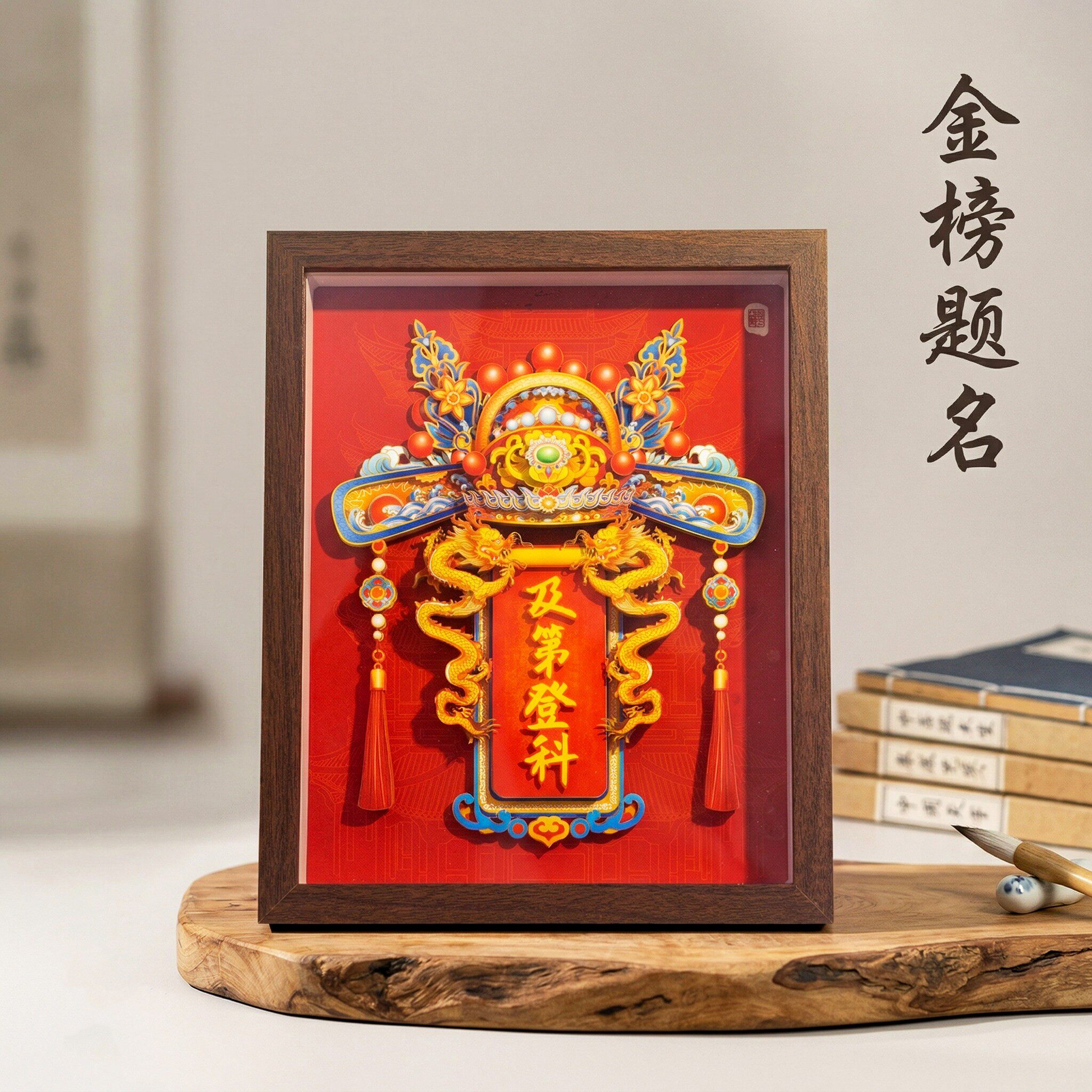 金榜题名状元帽剪纸木质相框摆台高考礼物装饰摆件桌面摆件画框