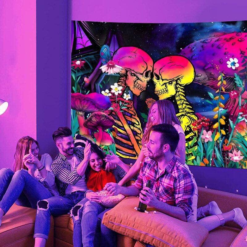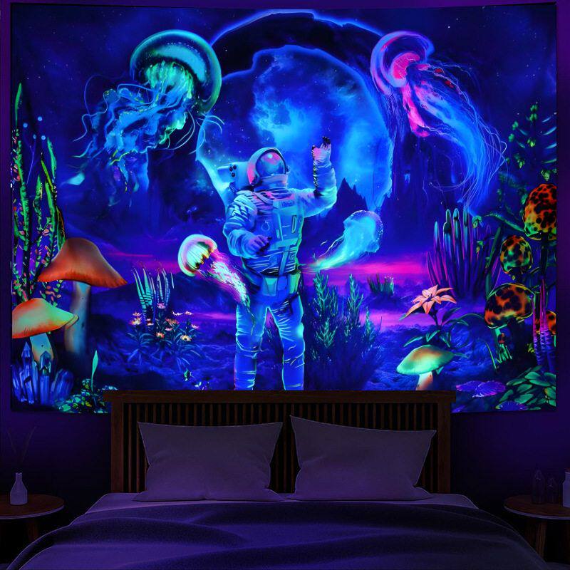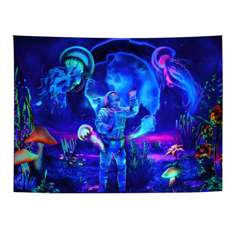 房间装饰荧光挂毯黑光宇航员段时隧道酷炫海报彩色背挂布材质可选