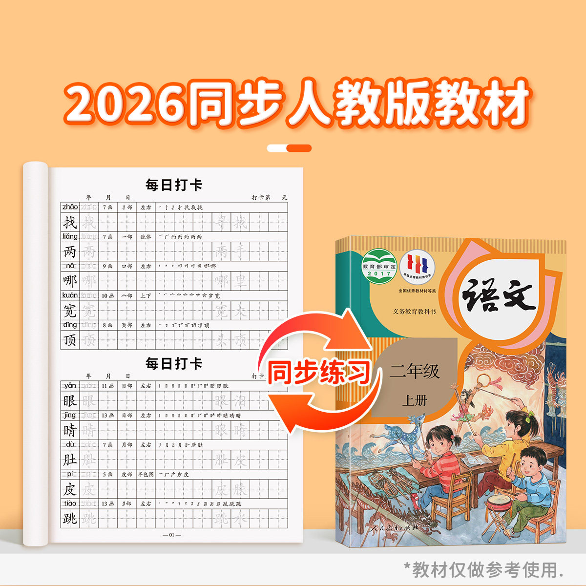 二年级同步字帖每日打卡人教版小学生专用2026新版语文练字帖笔画笔顺描红写字每日一练组词造句识字练习本硬笔书法练字本