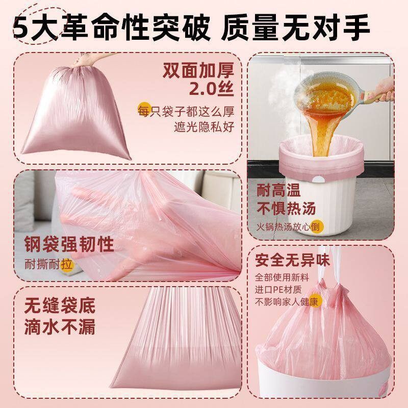 冰莓粉加厚手提式垃圾袋抽绳式包装塑料袋厨房宿舍大号粉色收纳袋