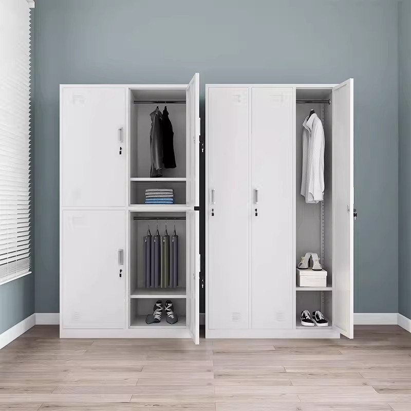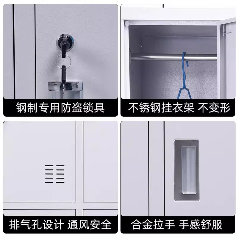 钢制员工四门更衣柜工厂宿舍铁皮储物柜浴室存包柜带锁4门换衣柜