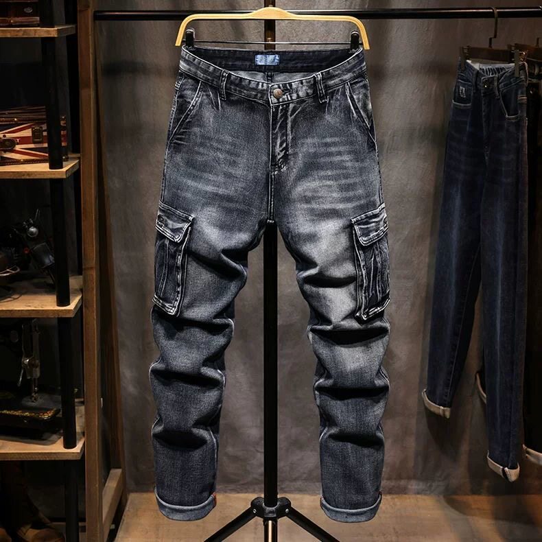 2026春季耐磨厚款多兜牛仔裤男宽松直筒复古潮牌工装多口袋长裤子