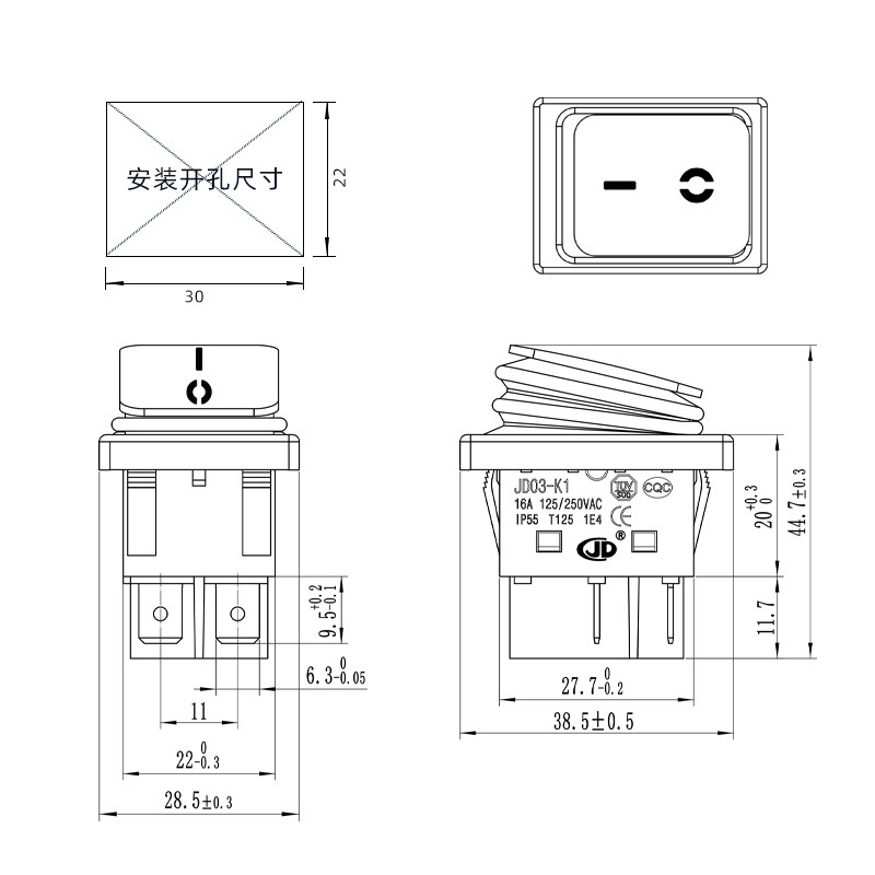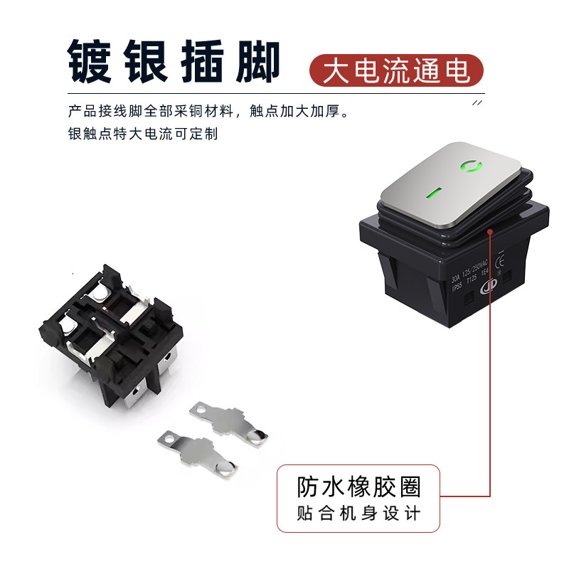 防水船型开关KCD4不锈钢面4脚带灯银点50A大电流翘板电源船形开关
